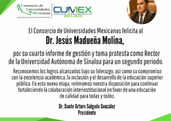 CUMex felicita al Dr. Jesús Madueña Molina, por su cuarto informe de gestión y toma de protesta como Rector de la Universidad Autónoma de Sinaloa para un segundo periodo.